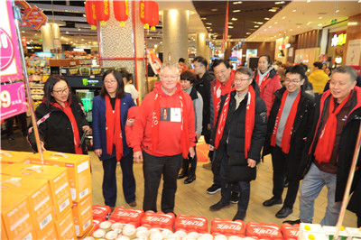 冯广晟一行实地考察了春节期间可口可乐在中高档餐饮渠道的执行、年夜饭的场景营销;在凯德商圈了解超级城市项目中渠道至高点的抢占及山东厂CNY期间大卖场渠道的执行,期间对礼盒执行、多点陈列、跨品类促销等市场执行情况进行详细了解,并加入助销队伍,向奋战在一线的销售、理货人员、后勤助销人员送上新春祝福。